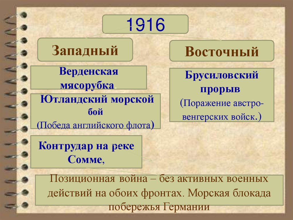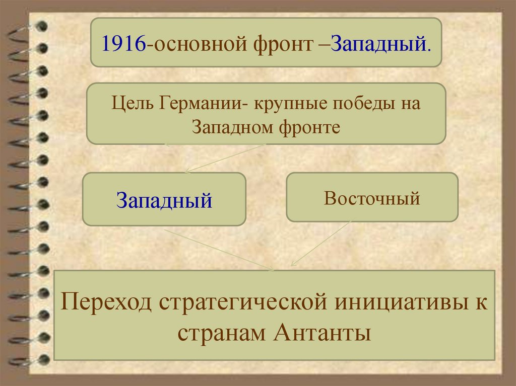 1916-основной фронт –Западный.Цель Германии- крупные победы на