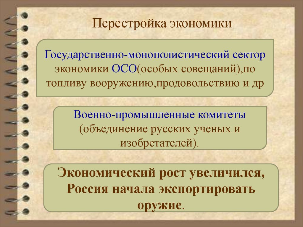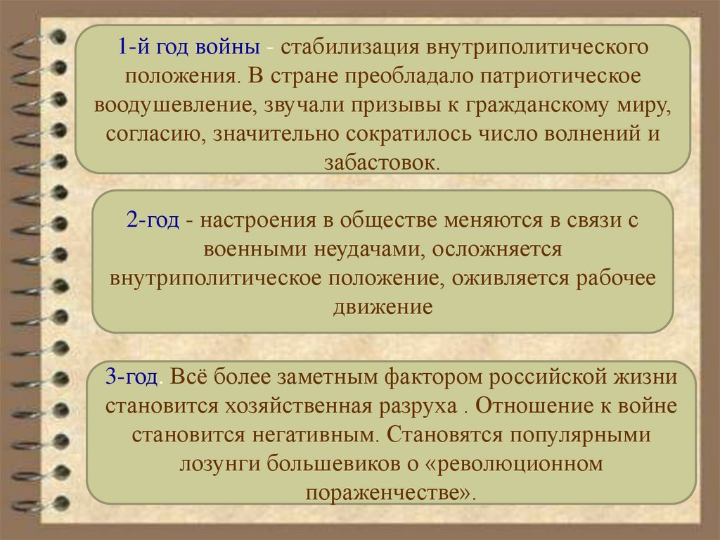 1-й год войны - стабилизация внутриполитическогоположения. В стране преобладало патриотическое