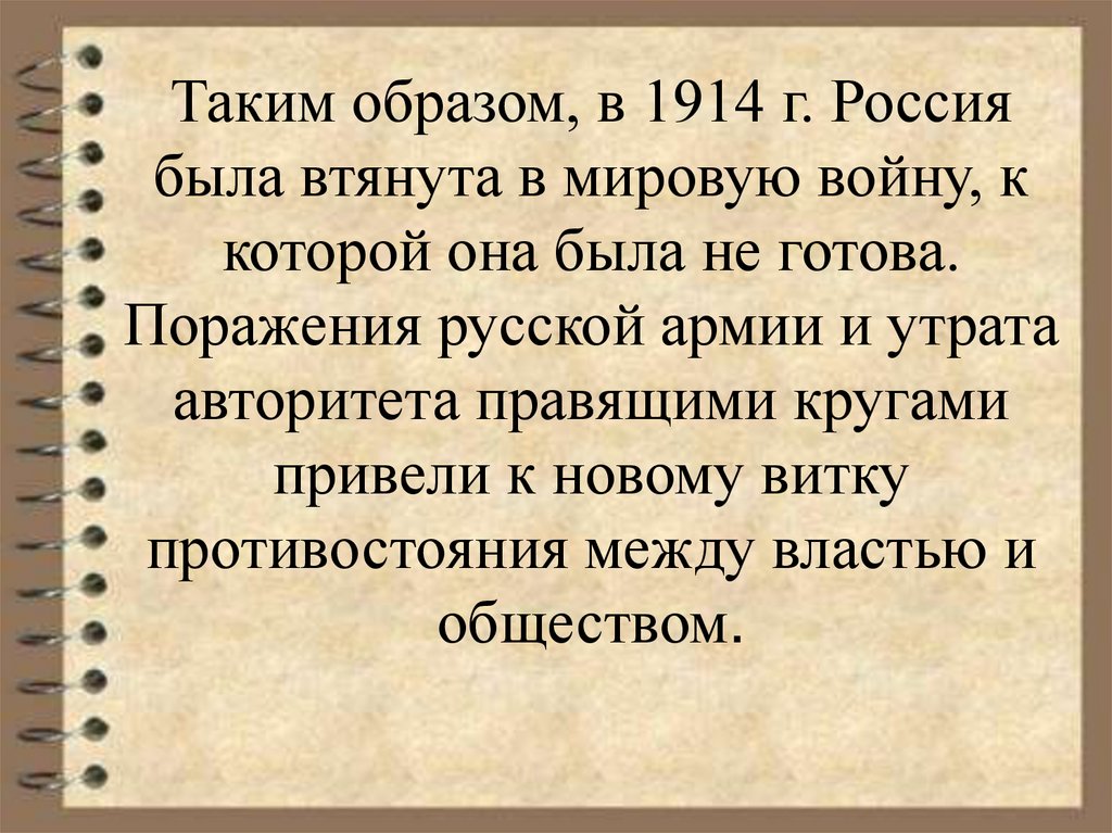 Таким образом, в 1914 г. Россиябыла втянута в мировую войну, к