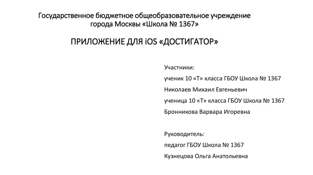 1. Государственное бюджетное общеобразовательное учреждение города Москвы «Школа № 1367» ПРИЛОЖЕНИЕ ДЛЯ iOS «ДОСТИГАТОР»