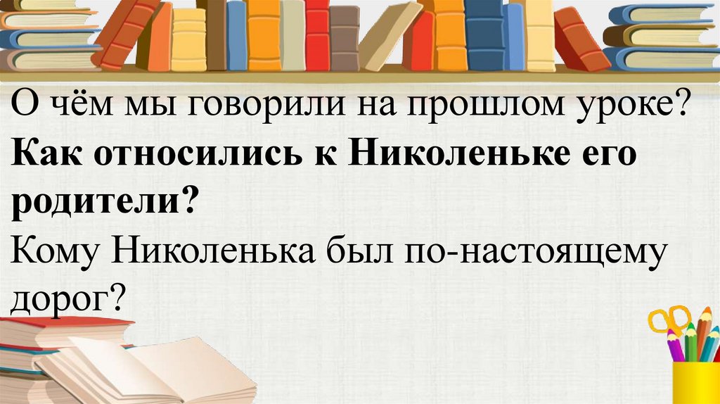 О чём мы говорили на прошлом уроке?Как относились к Николеньке его