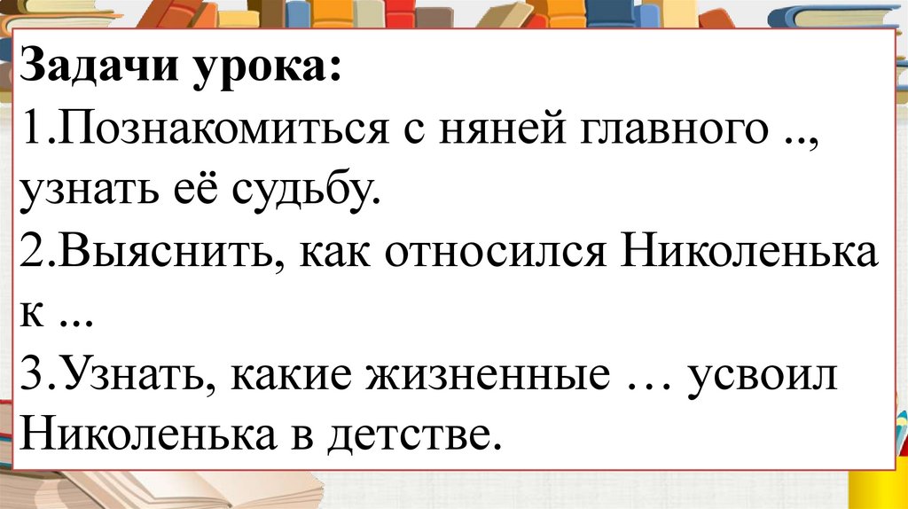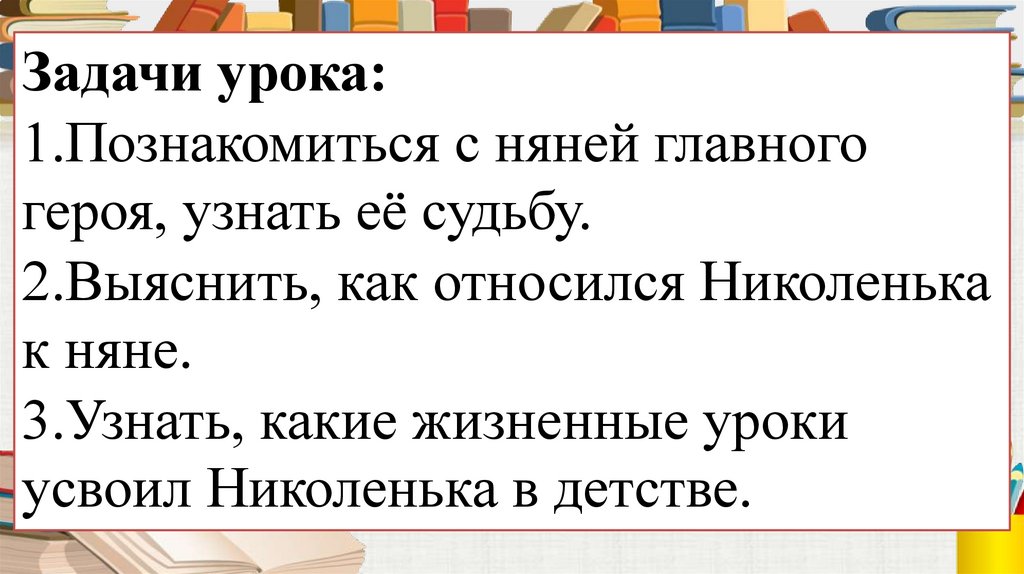 Задачи урока:1.Познакомиться с няней главного
