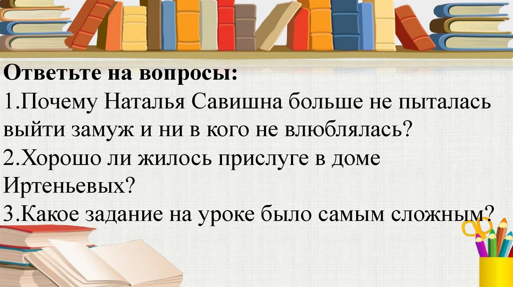 Ответьте на вопросы:1.Почему Наталья Савишна больше не пыталась