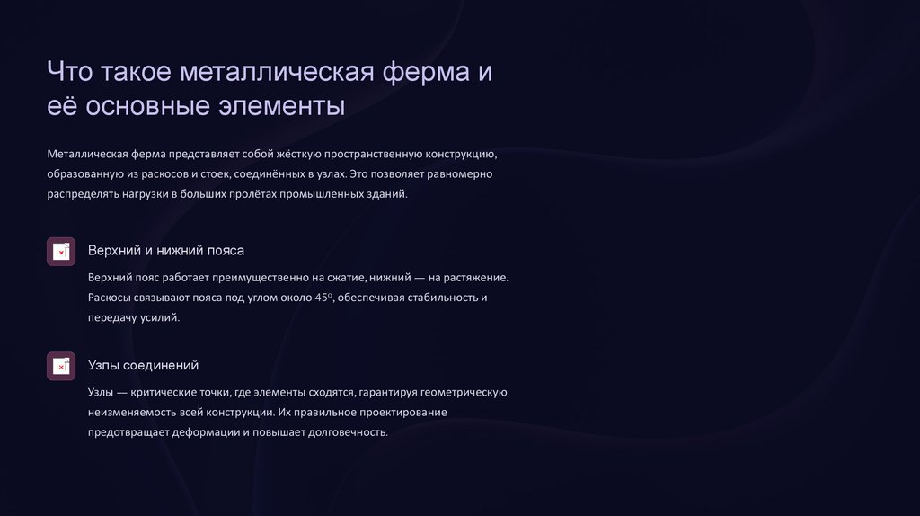 Металлическая ферма представляет собой жёсткую пространственную конструкцию,