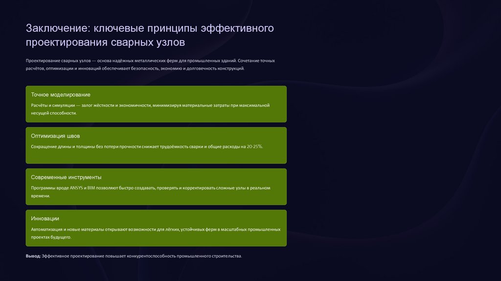Заключение: ключевые принципы эффективногопроектирования сварных узлов