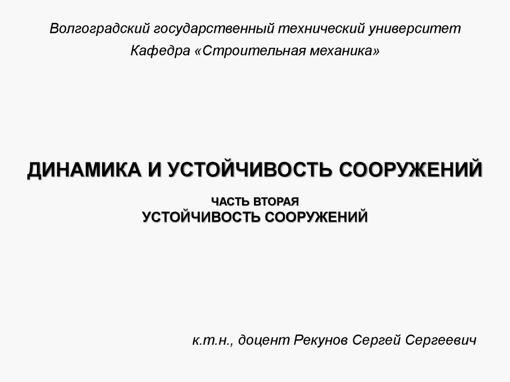 Кафедра «Строительная механика»ДИНАМИКА И УСТОЙЧИВОСТЬ СООРУЖЕНИЙ