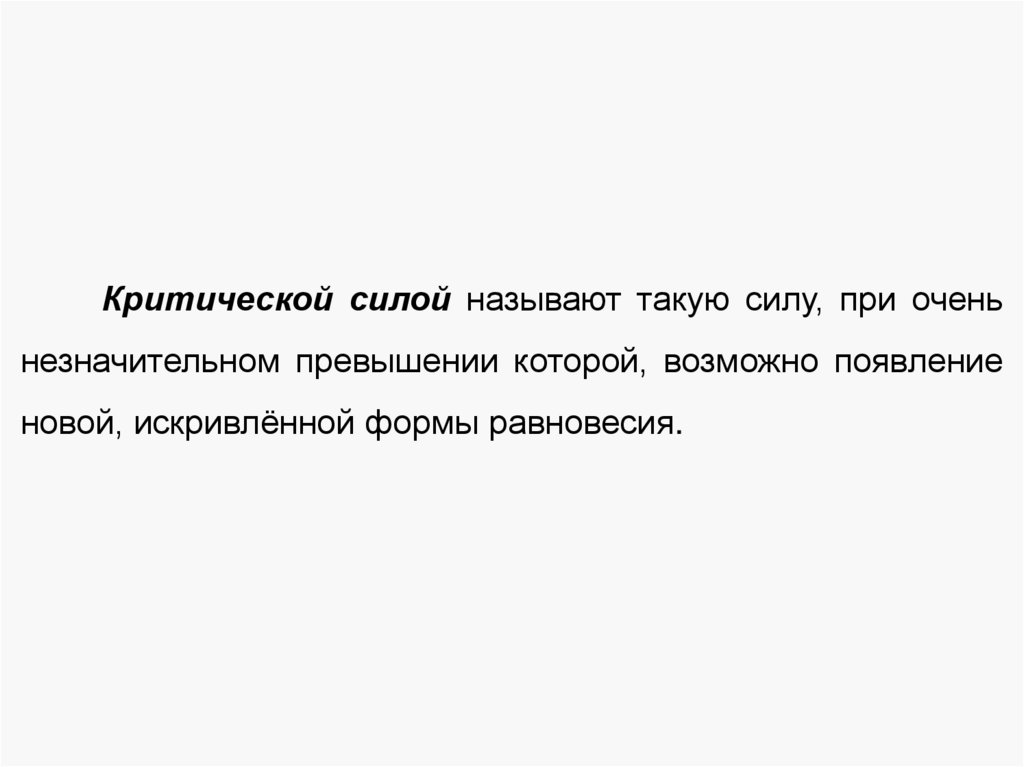 Критической силой называют такую силу, при оченьнезначительном превышении которой, возможно появление
