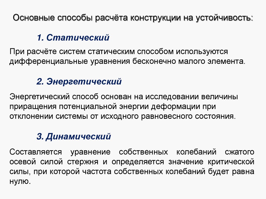 Основные способы расчёта конструкции на устойчивость:1. Статический