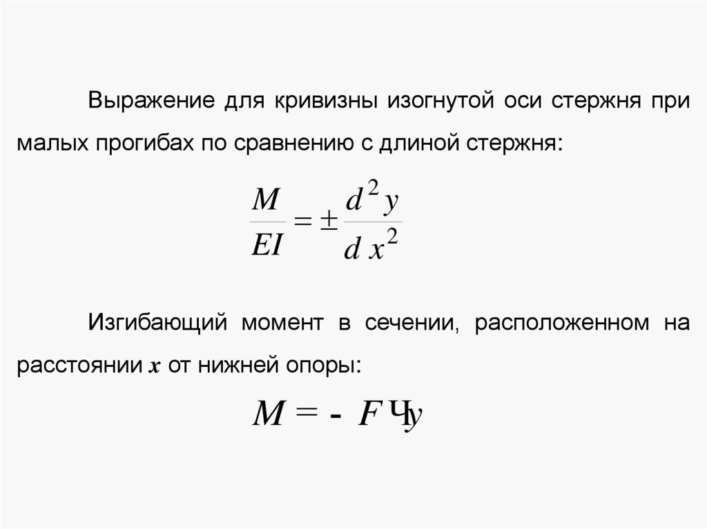 Выражение для кривизны изогнутой оси стержня прималых прогибах по сравнению с длиной стержня: