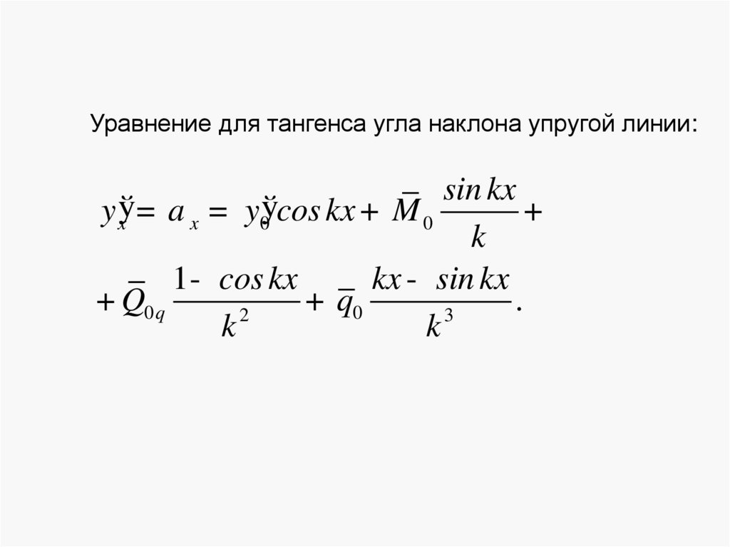 Уравнение для тангенса угла наклона упругой линии:sin kx