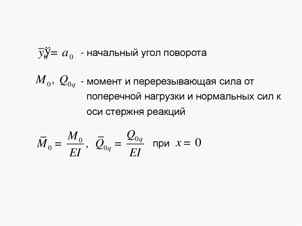 y0ў= a 0 - начальный угол поворотаM 0 , Q0q - момент и перерезывающая сила от