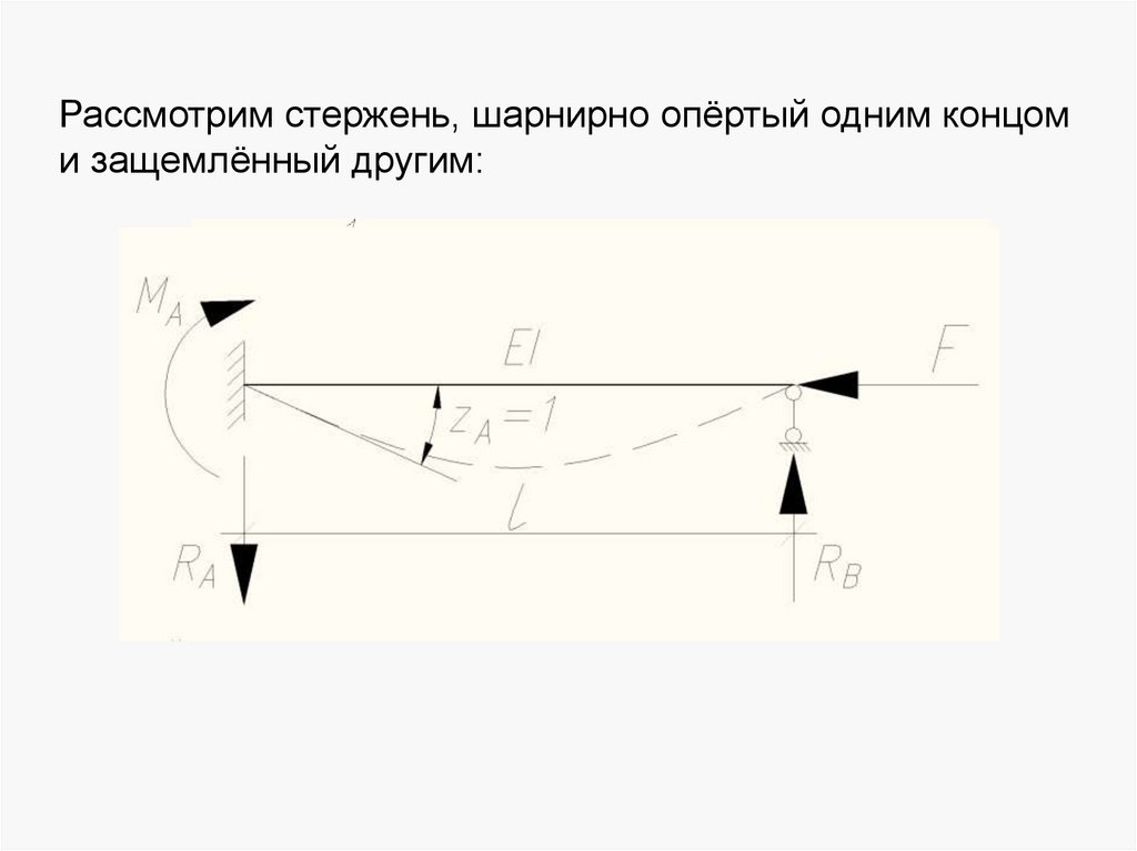 Рассмотрим стержень, шарнирно опёртый одним концоми защемлённый другим: