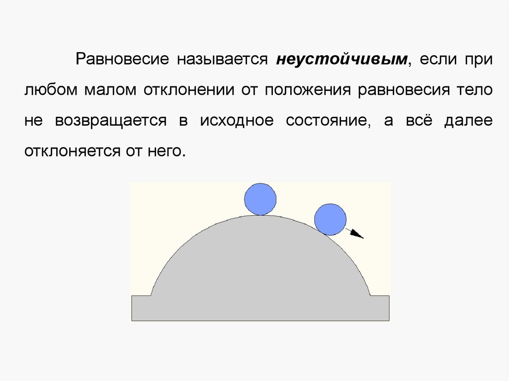 Равновесие называется неустойчивым, если прилюбом малом отклонении от положения равновесия тело