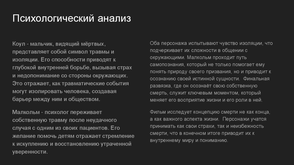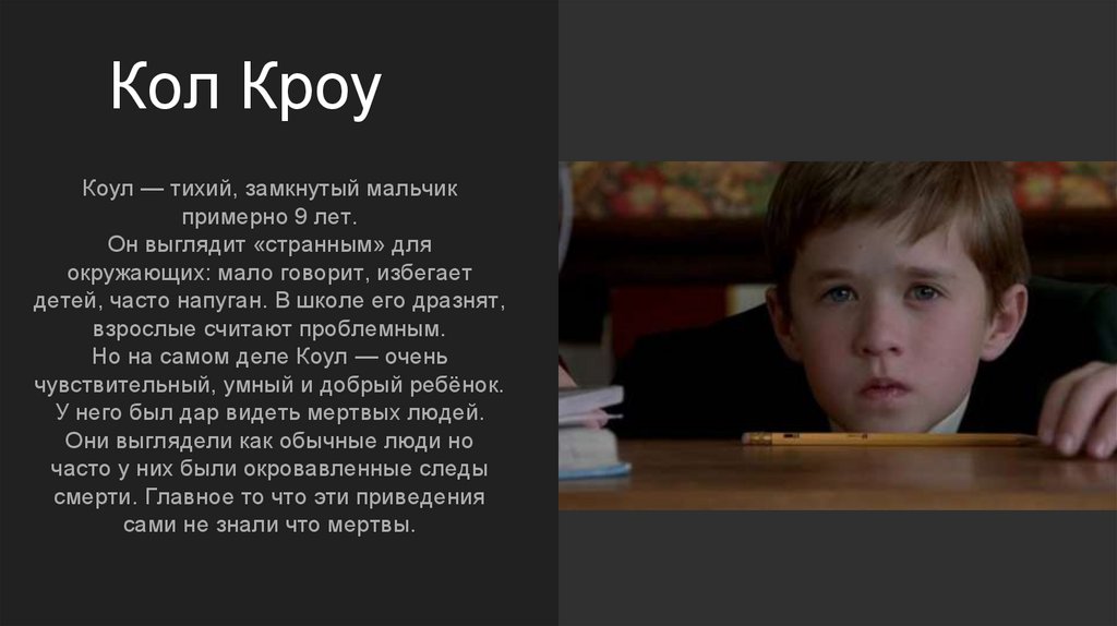 Психологический анализКоул - мальчик, видящий мёртвых,