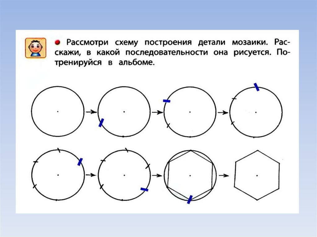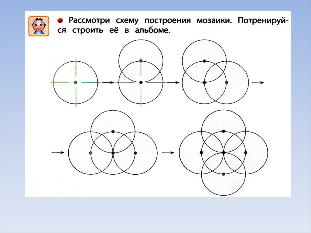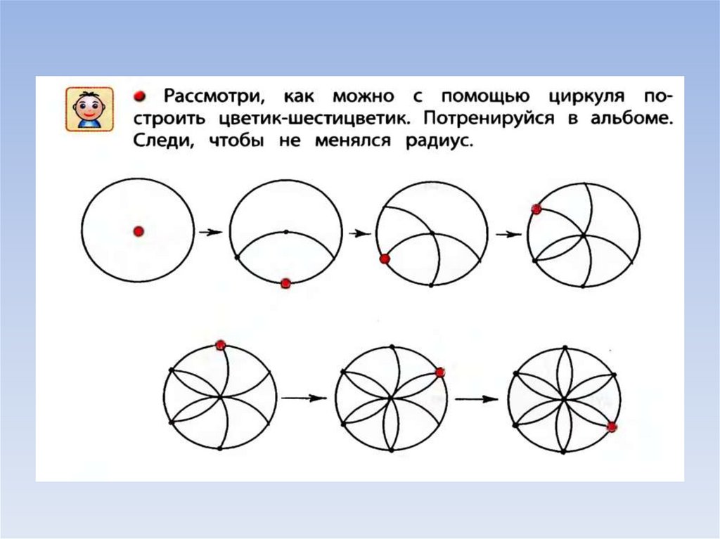 8. При помощи циркуля потренируйся чертить дуги и окружности