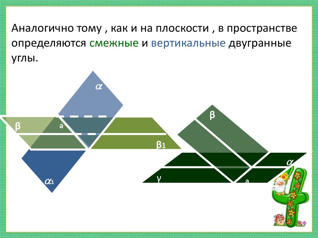 Аналогично тому , как и на плоскости , в пространствеопределяются смежные и вертикальные двугранные