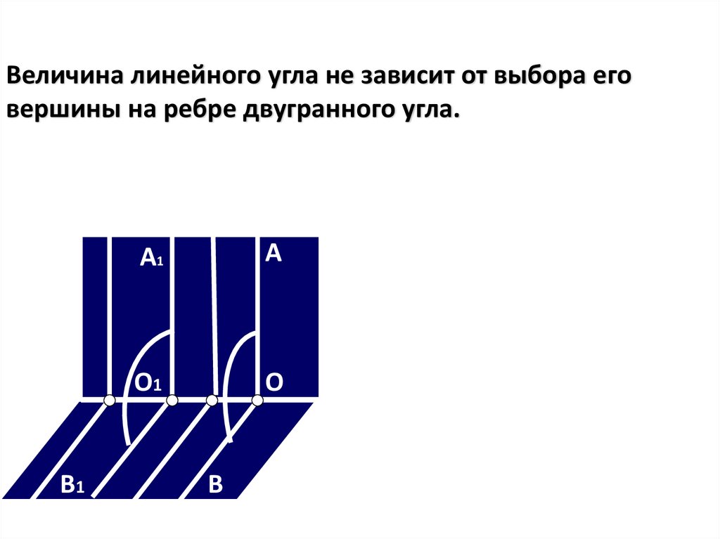 Величина линейного угла не зависит от выбора еговершины на ребре двугранного угла.
