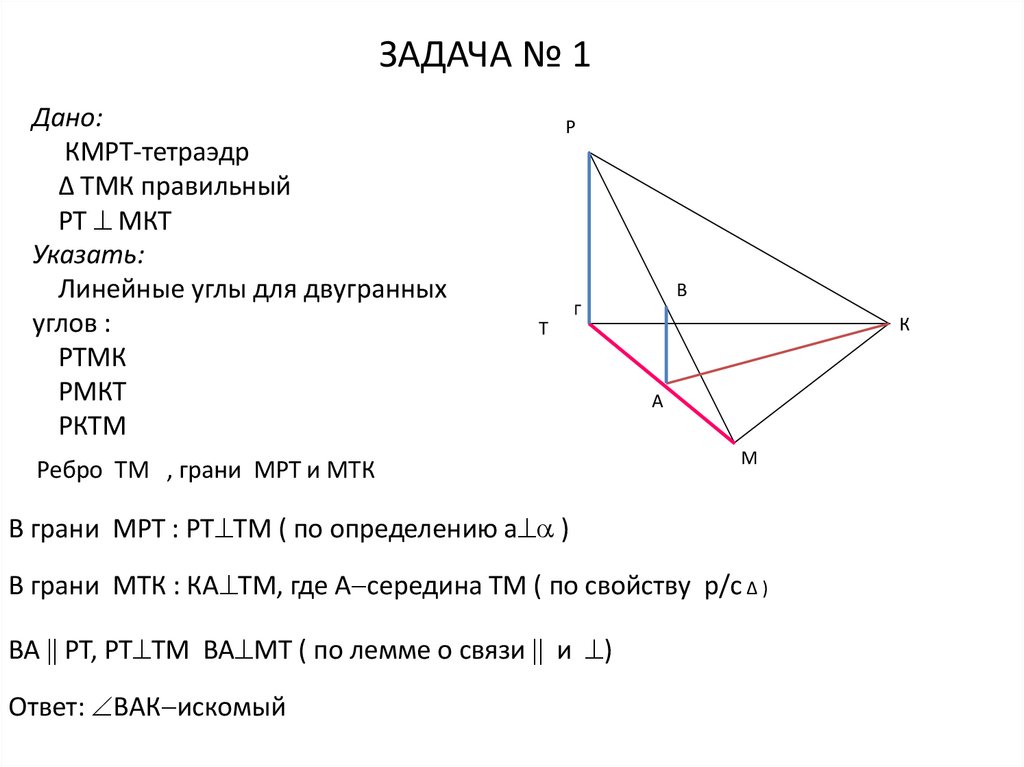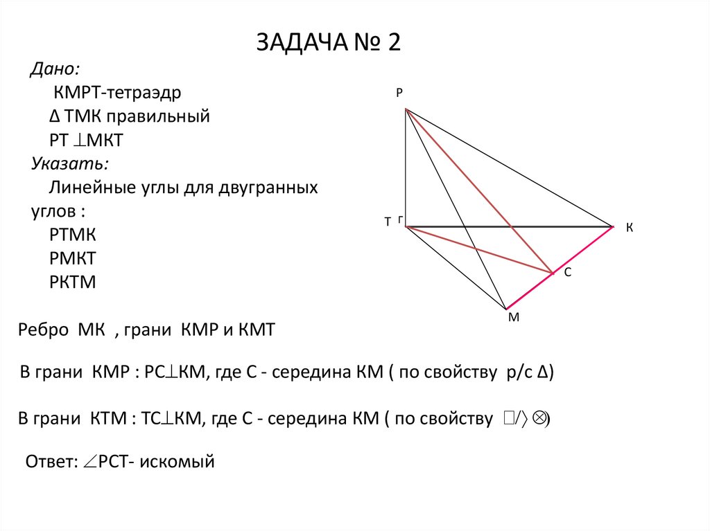 Ребро МК , грани КМР и КМТ