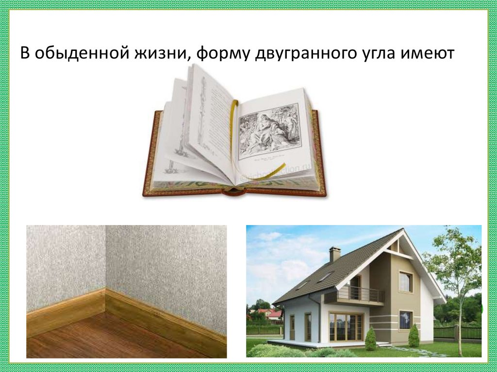В обыденной жизни, форму двугранного угла имеют10.