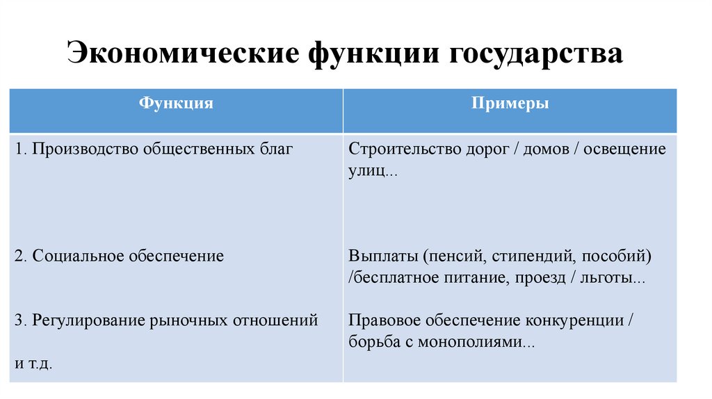 Государство выполняет различные функции в экономическойжизни общества. В частности, поддерживает и защищает