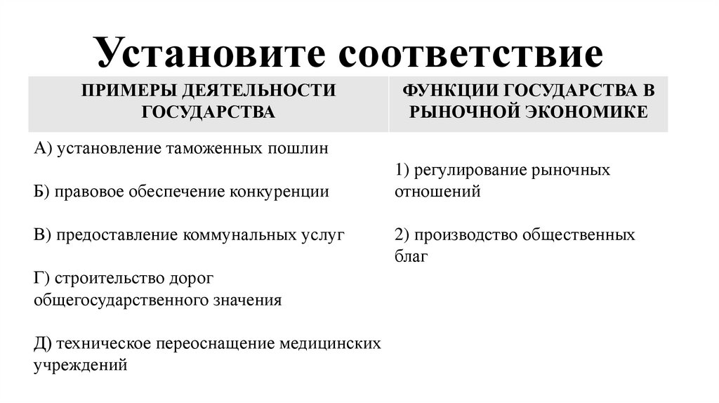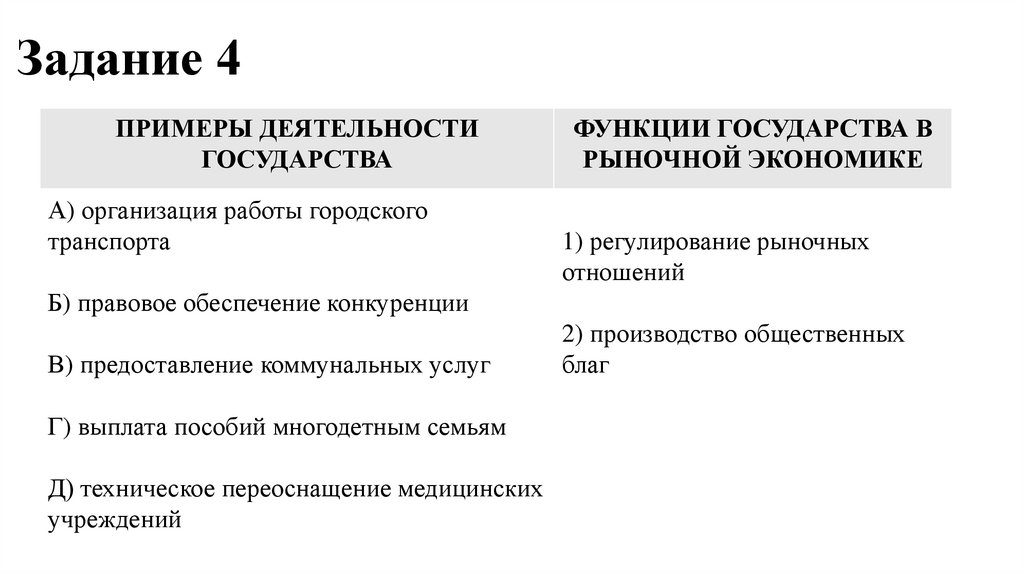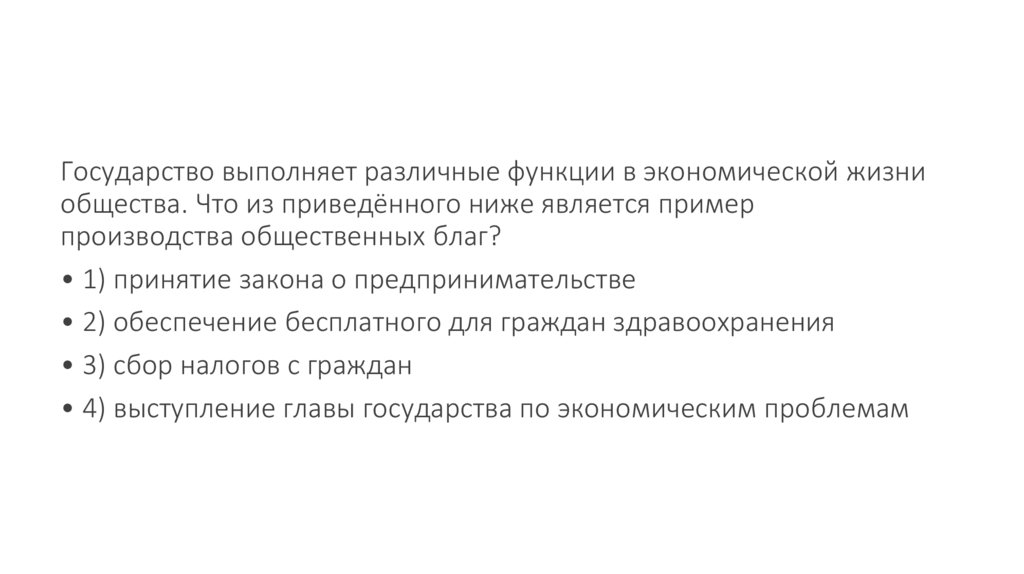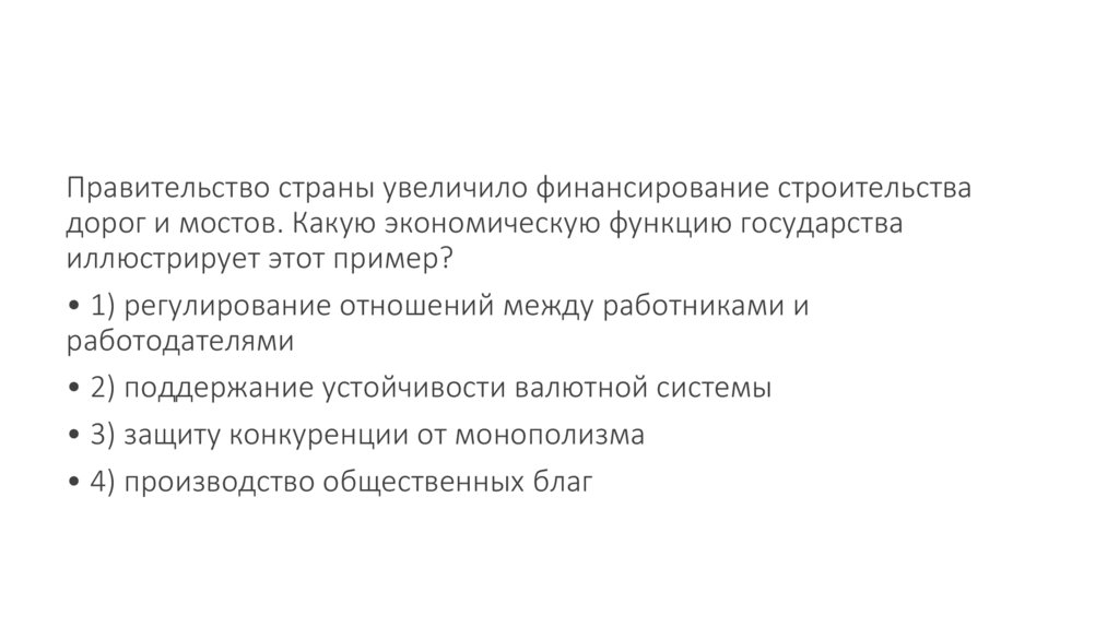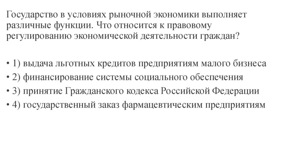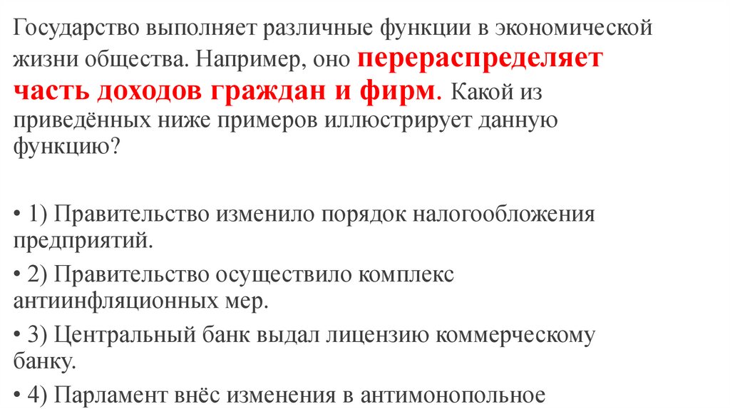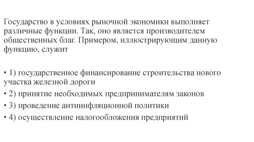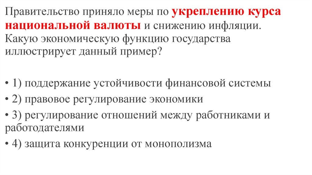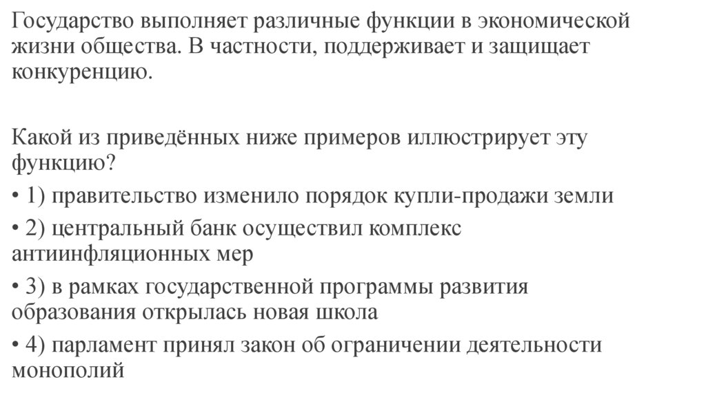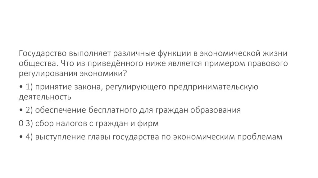 Государство выполняет различные функции в экономической жизниобщества. Что из приведённого ниже является примером правового