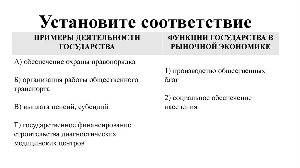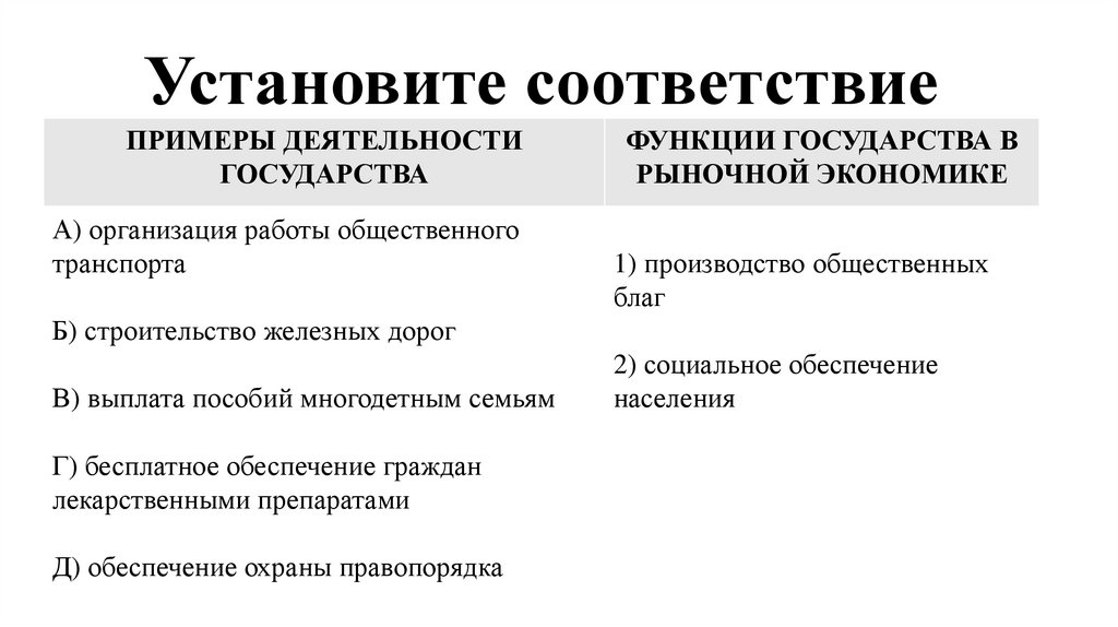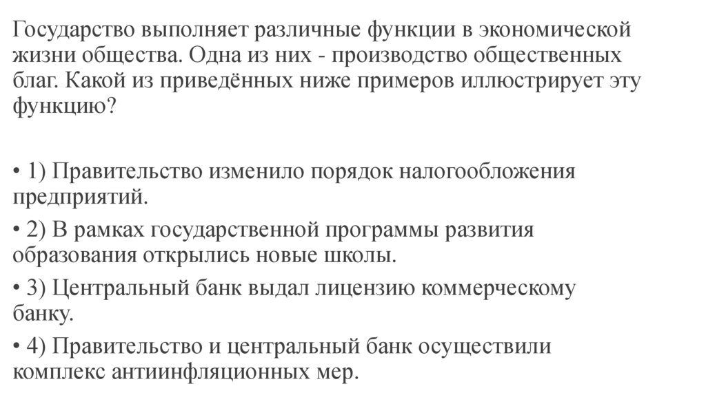 Государство выполняет различные функции вэкономической жизни общества. Что из приведённого