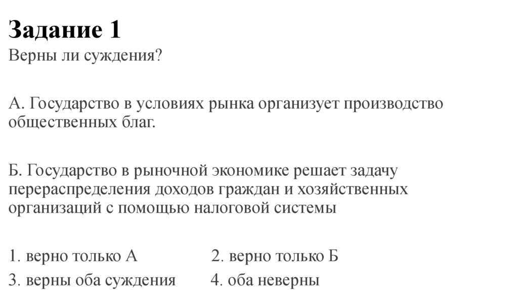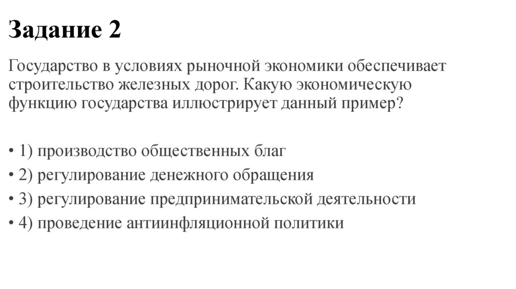 Задание 2Государство в условиях рыночной экономики обеспечивает