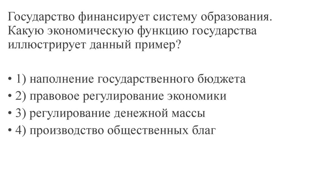 Государство финансирует систему образования.Какую экономическую функцию государства