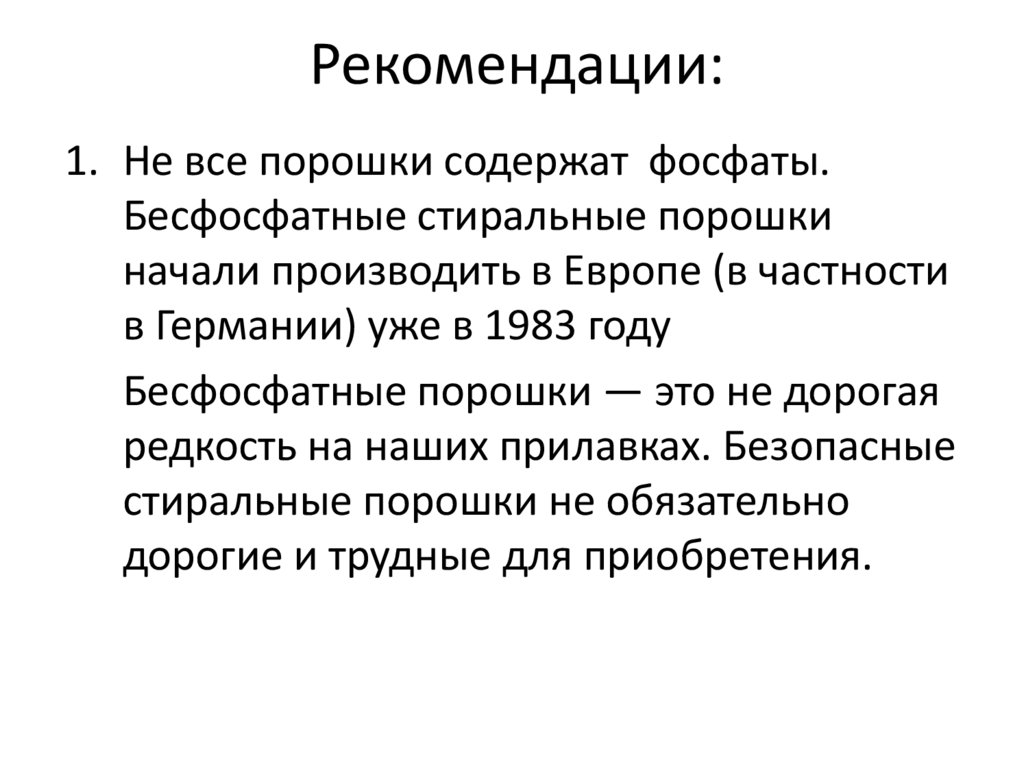 Рекомендации:1. Не все порошки содержат фосфаты.