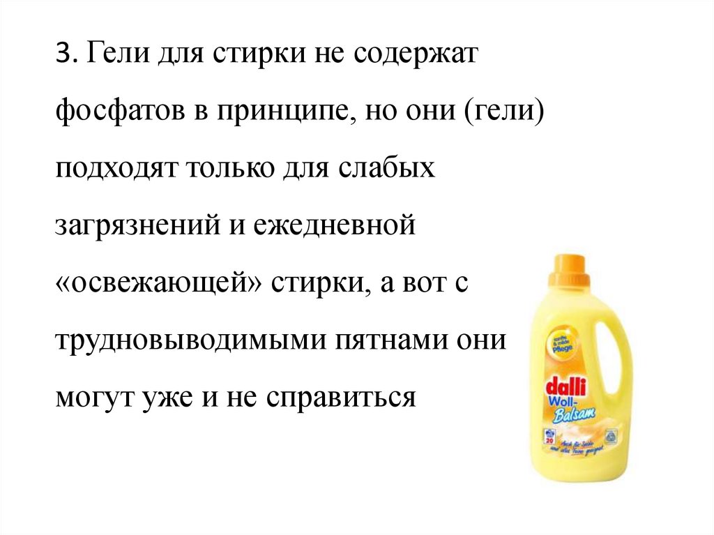 3. Гели для стирки не содержатфосфатов в принципе, но они (гели)