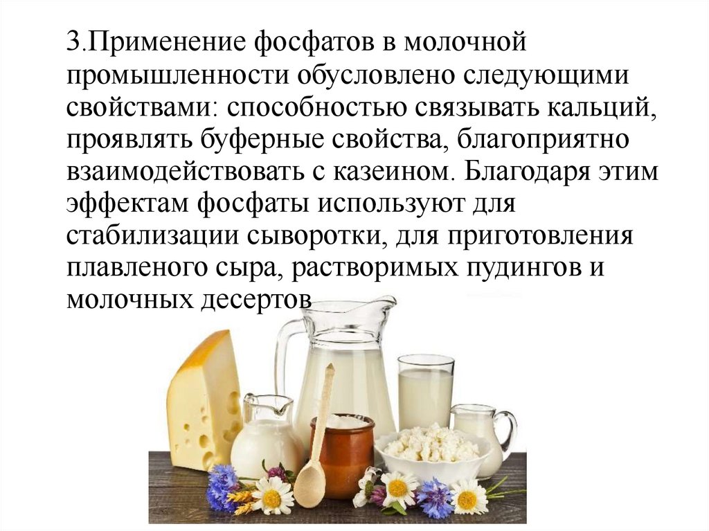 3.Применение фосфатов в молочнойпромышленности обусловлено следующими