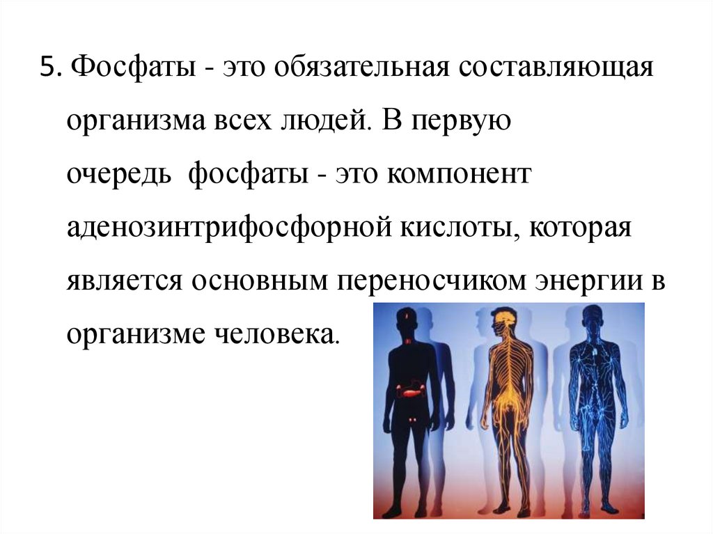 5. Фосфаты - это обязательная составляющаяорганизма всех людей. В первую