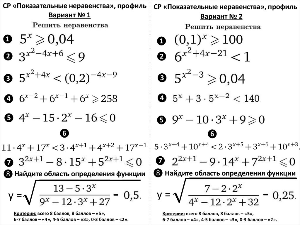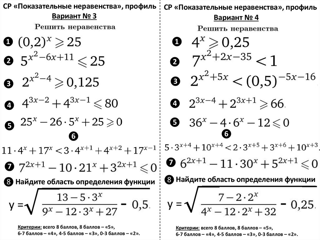 СР «Показательные неравенства», профиль СР «Показательные неравенства», профильВариант № 1