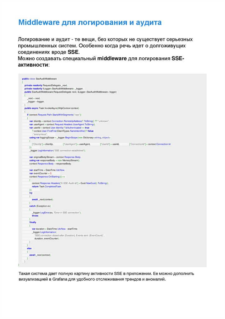 Такая система дает полную картину активности SSE в приложении. Ее можно дополнить