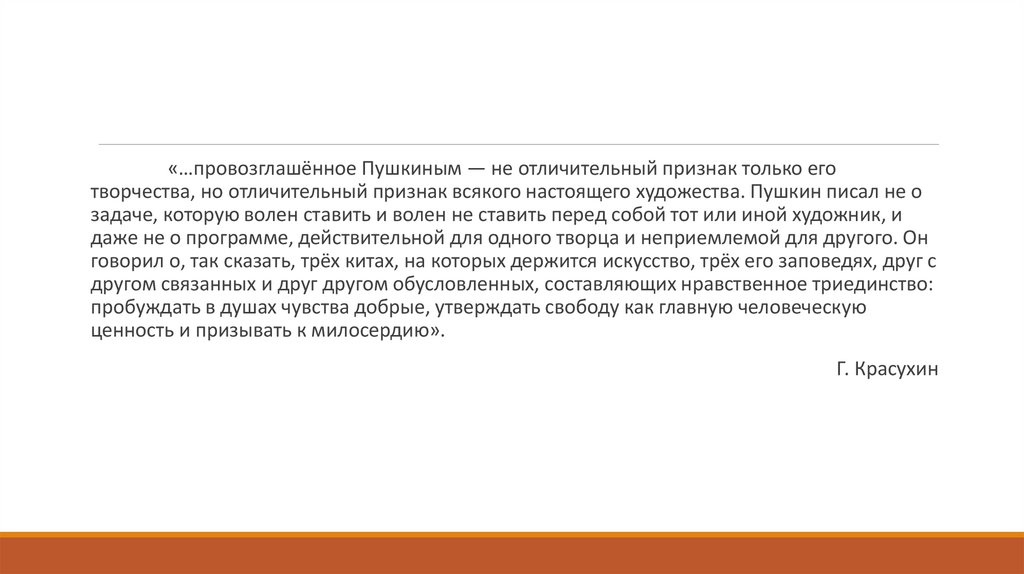 «…провозглашённое Пушкиным — не отличительный признак только еготворчества, но отличительный признак всякого настоящего художества. Пушкин писал не о