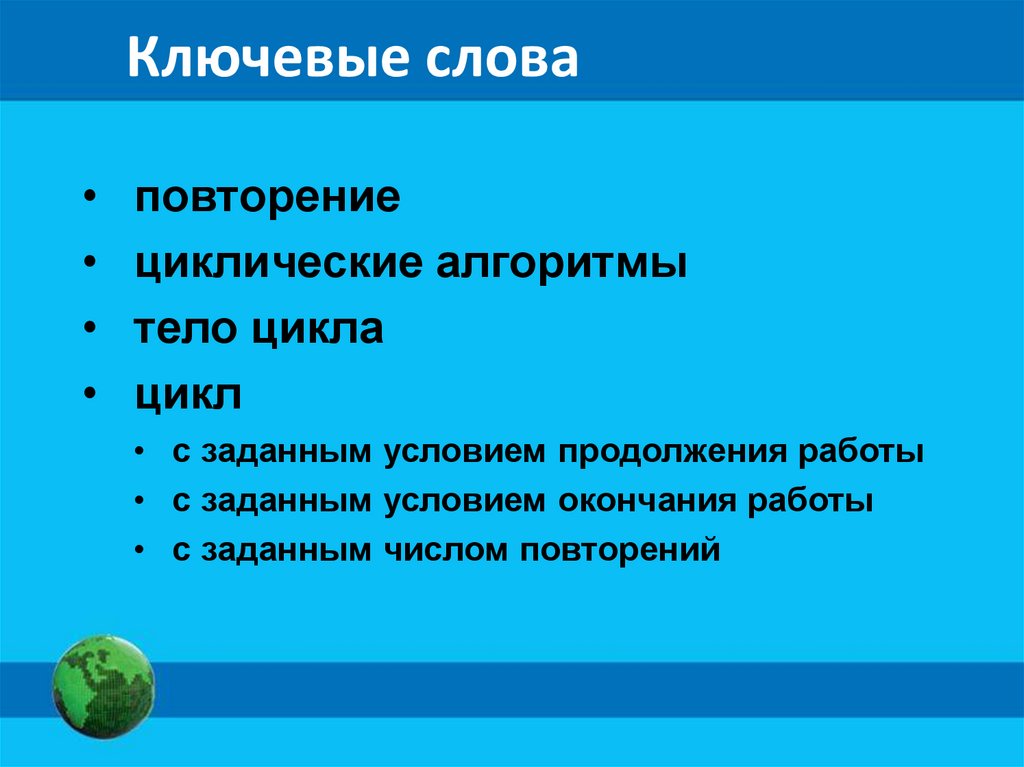 Ключевые словаповторение