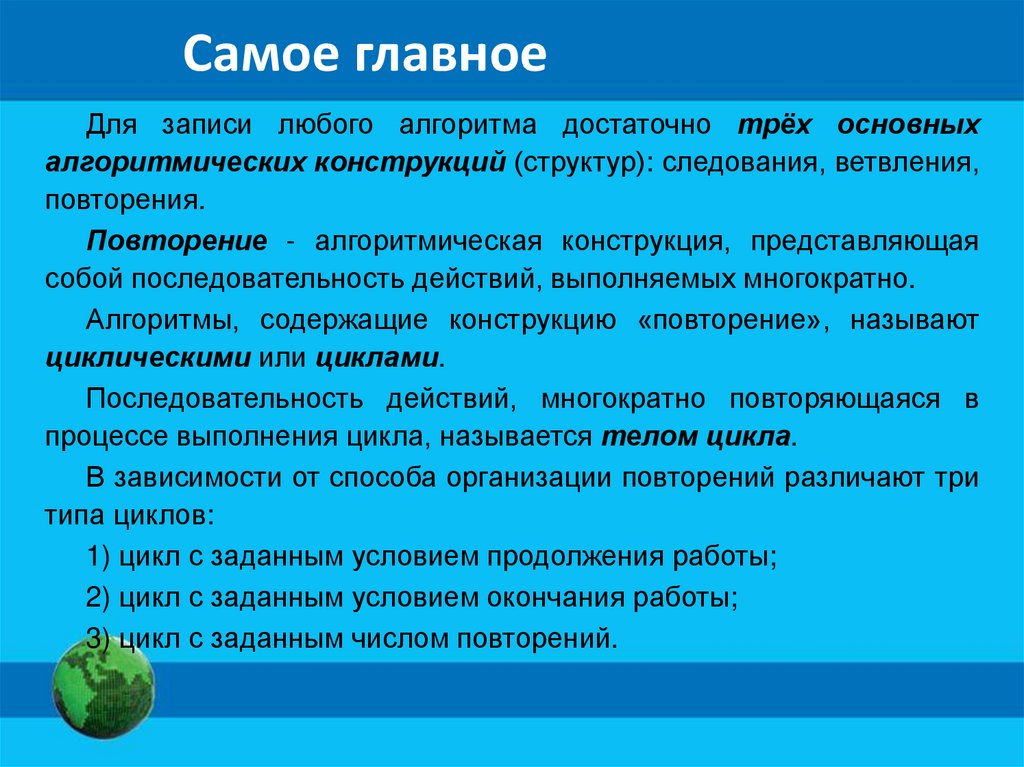 Опорный конспектПовторение - алгоритмическая конструкция, представляющая