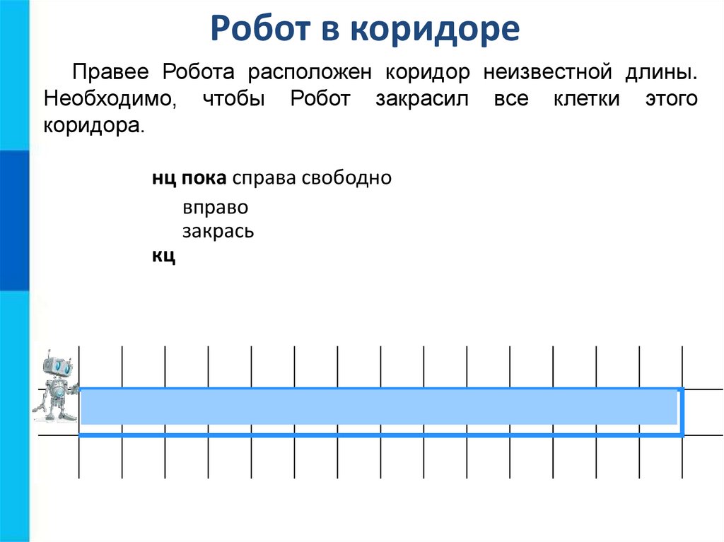 Робот в коридореПравее Робота расположен коридор неизвестной длины.