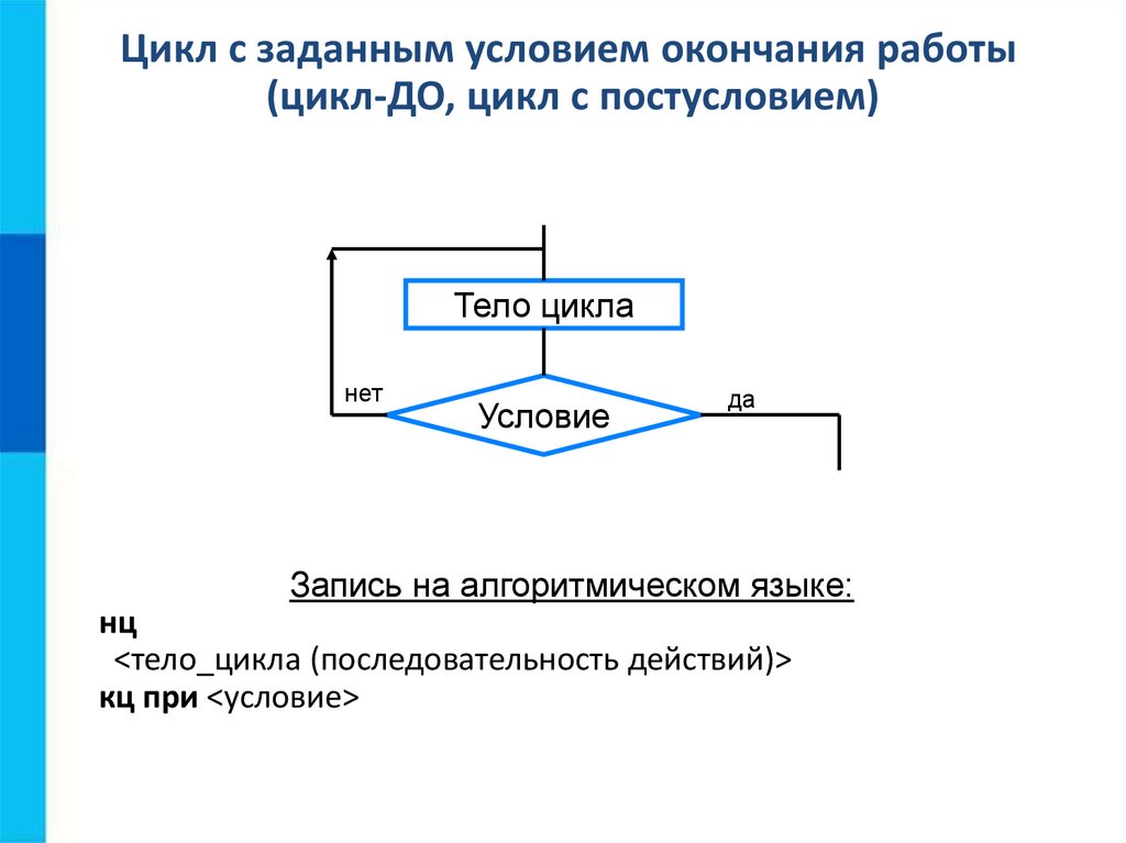 Цикл с заданным условием продолженияработы