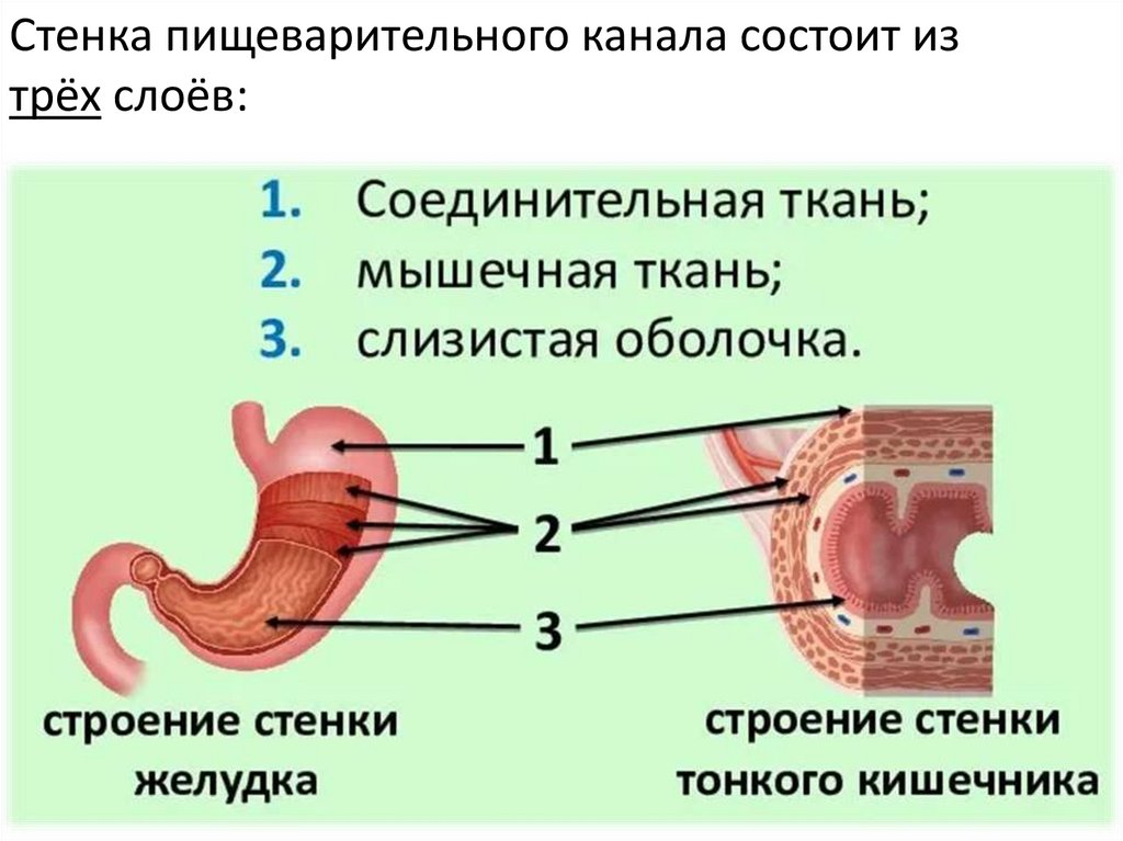 Стенка пищеварительного канала состоит изтрёх слоёв: