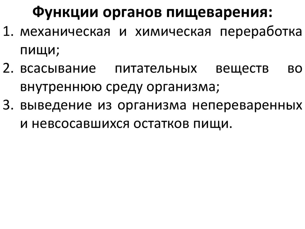 Функции органов пищеварения:1. механическая и химическая переработка