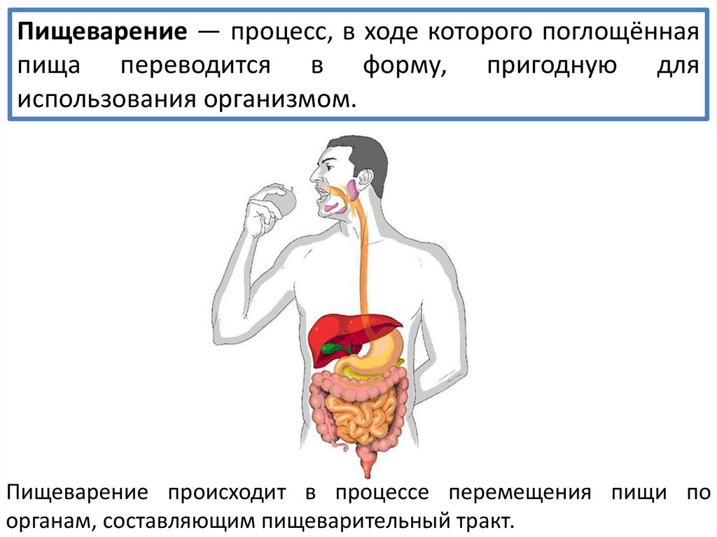 Пищеварение — процесс, в ходе которого поглощённаяпища переводится в форму, пригодную для