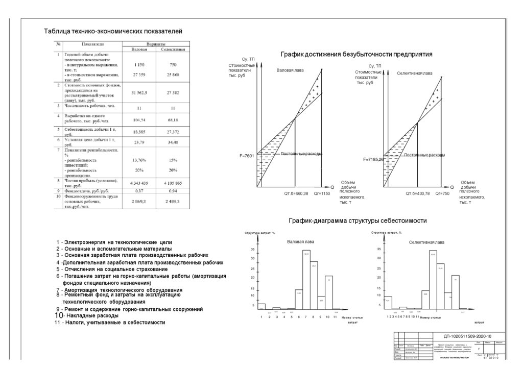 Таблица технико-экономических показателейГрафик достижения безубыточности предприятия