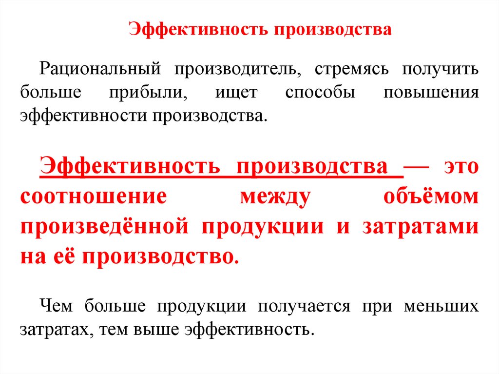 Эффективность производстваРациональный производитель, стремясь получить