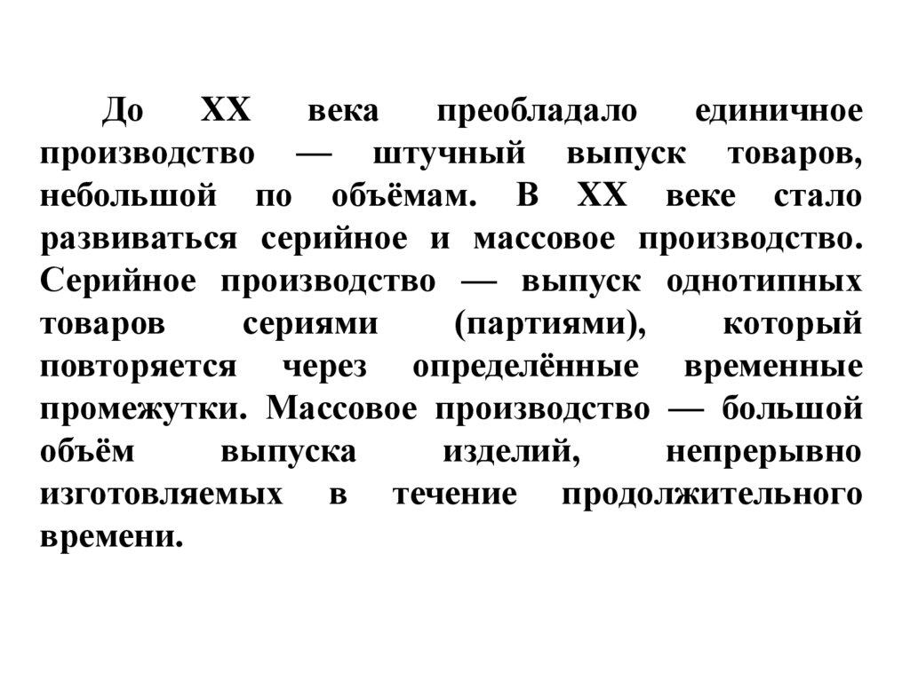 развиваться серийное и массовое производство.
