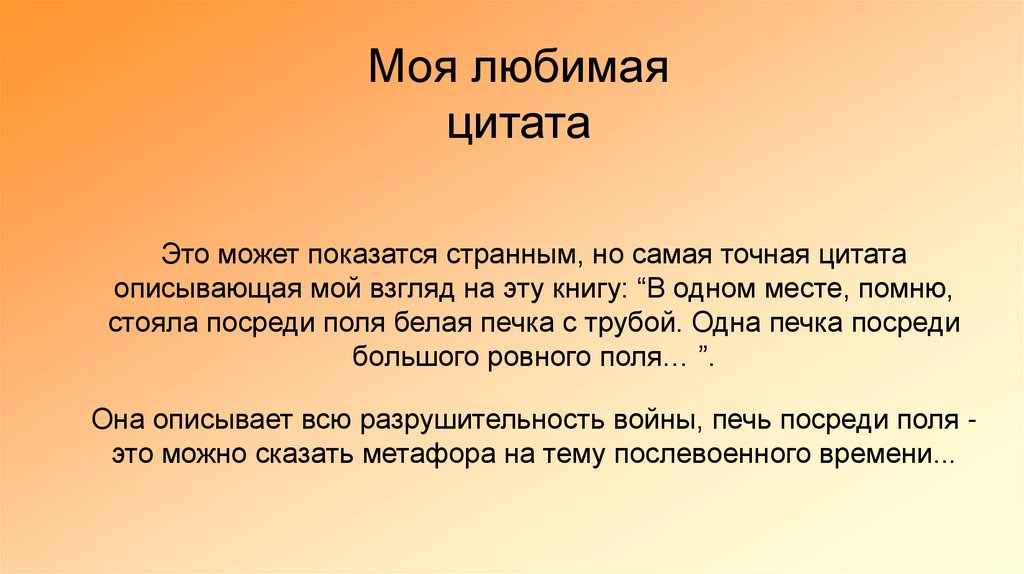 Она описывает всю разрушительность войны, печь посреди поля это можно сказать метафора на тему послевоенного времени...
