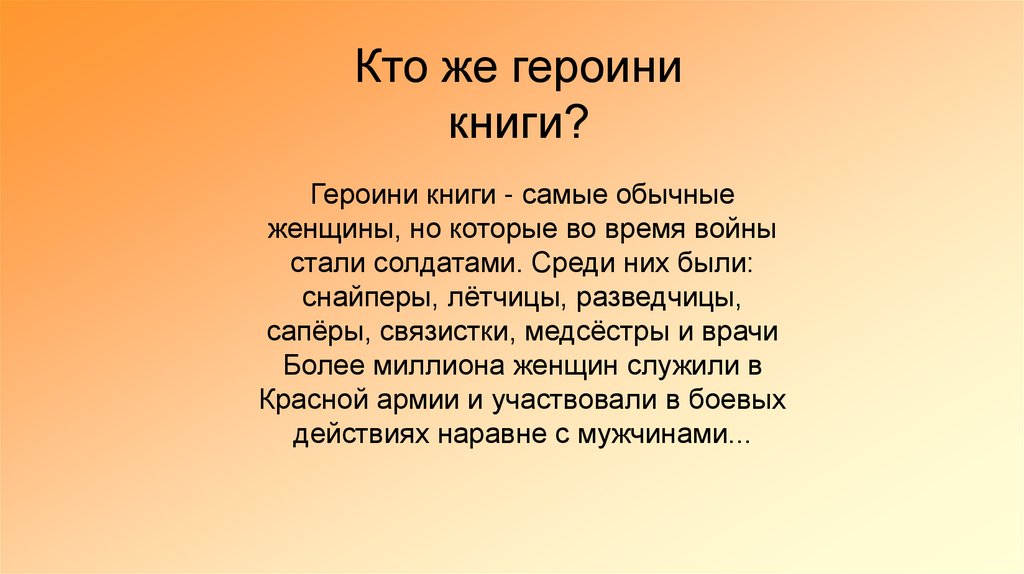 подлинных свидетельствах женщин, сражавшихся в годы Великой