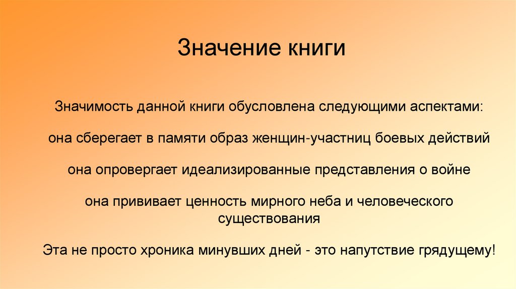 Значение книгиЗначимость данной книги обусловлена следующими аспектами: