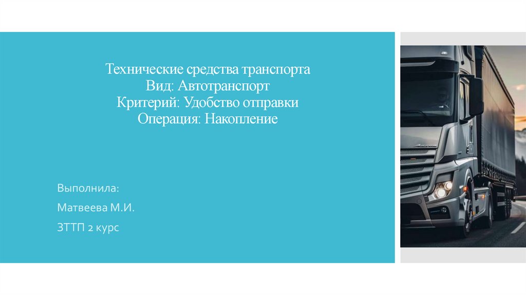 1. Технические средства транспорта Вид: Автотранспорт Критерий: Удобство отправки Операция: Накопление