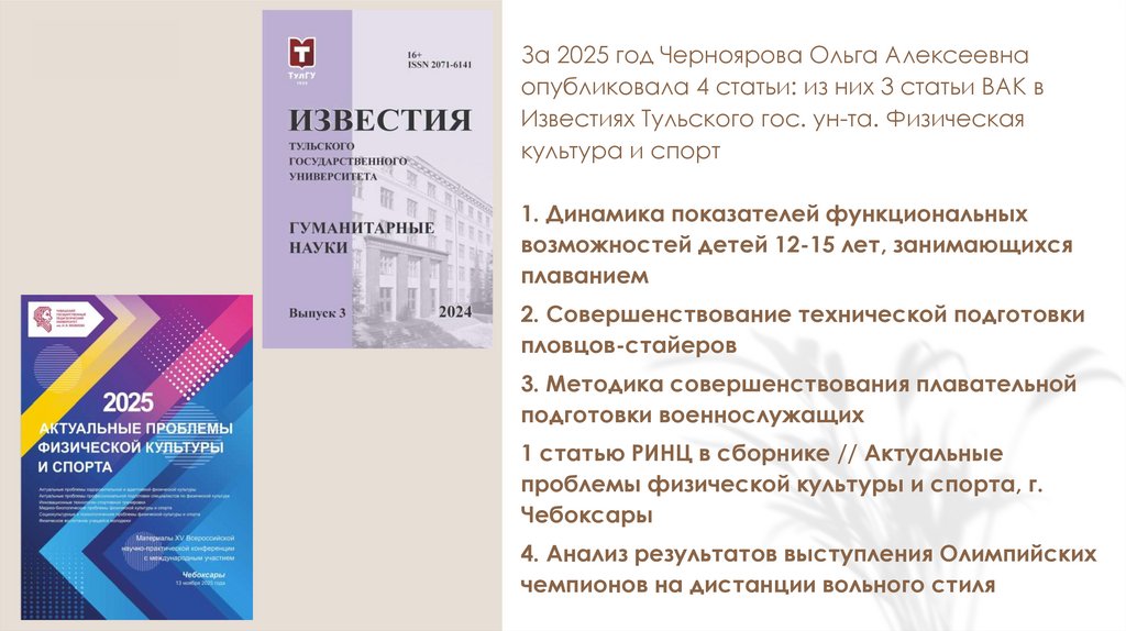 опубликовала 4 статьи: из них 3 статьи ВАК в